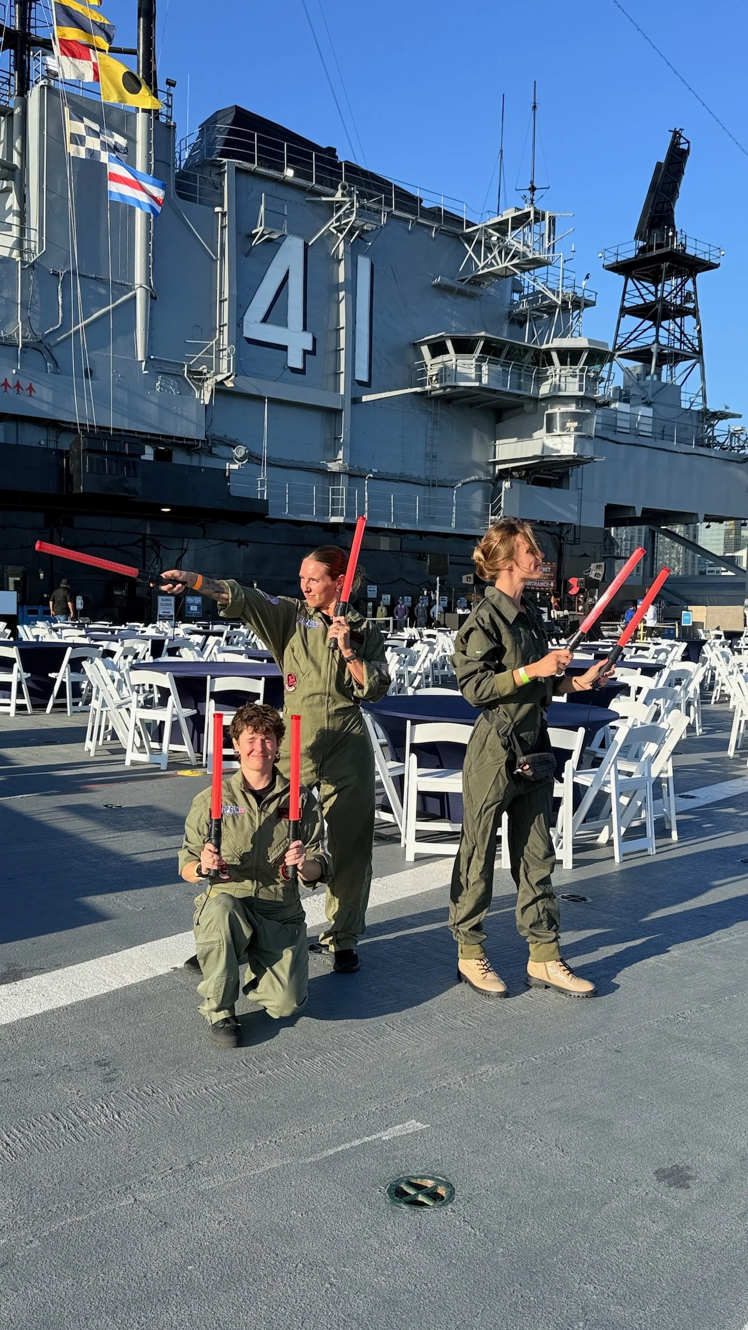 Some of our servers dressed in their flight suits to help direct guests to the different food stations.